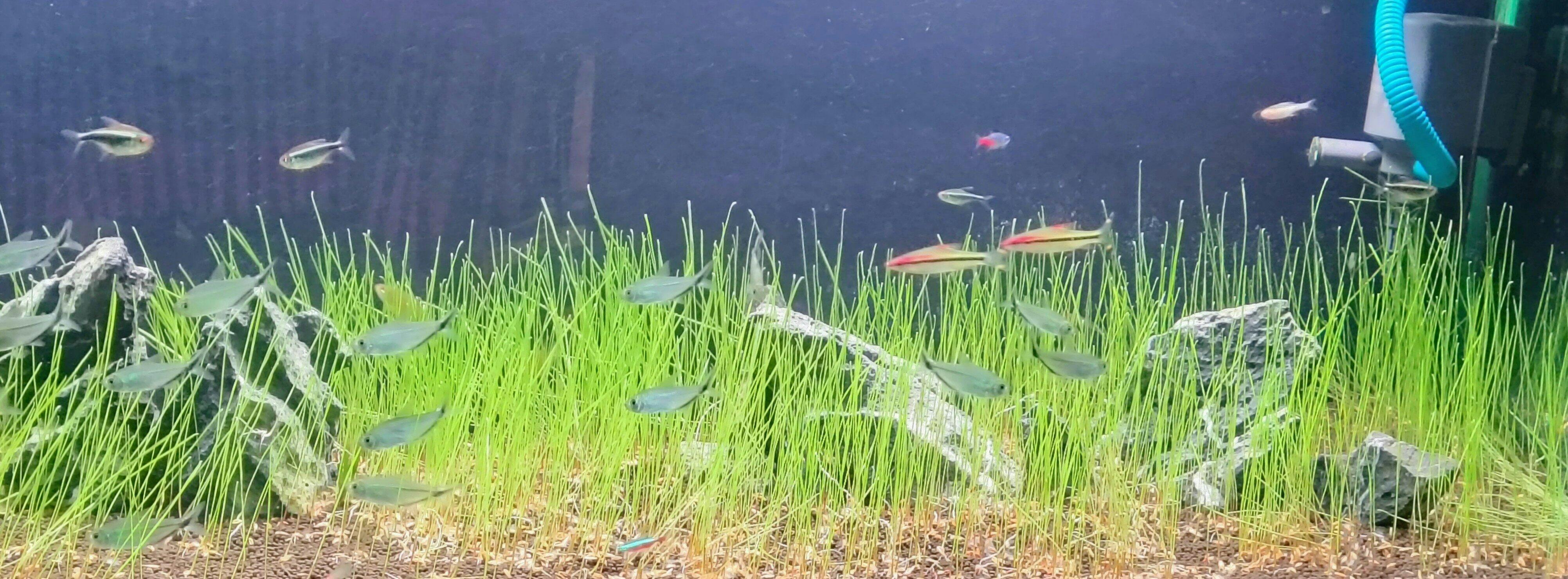 Dense, green carpet enhances aquarium aesthetics
